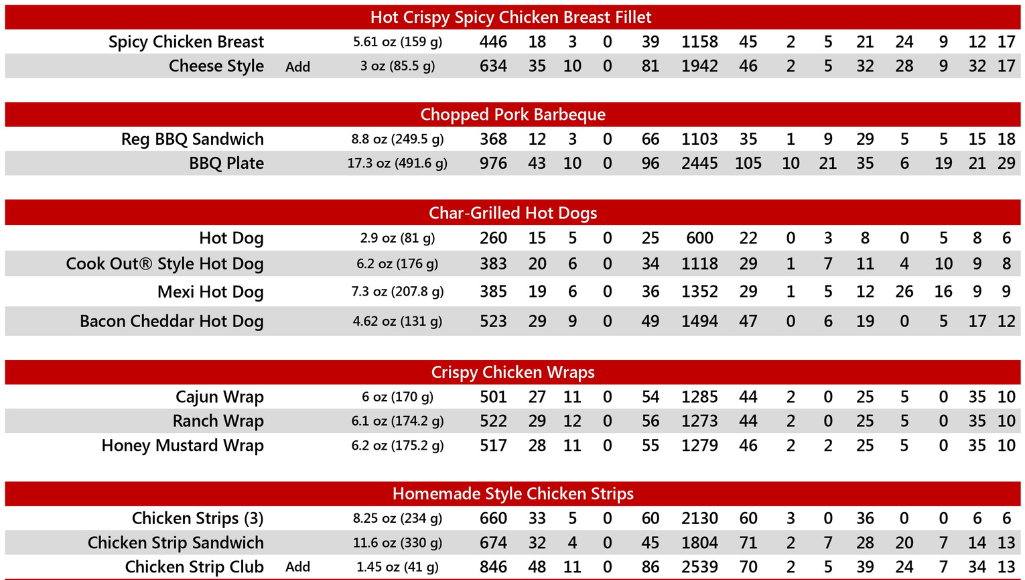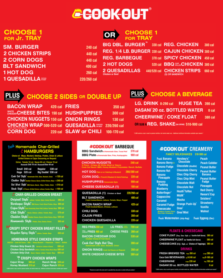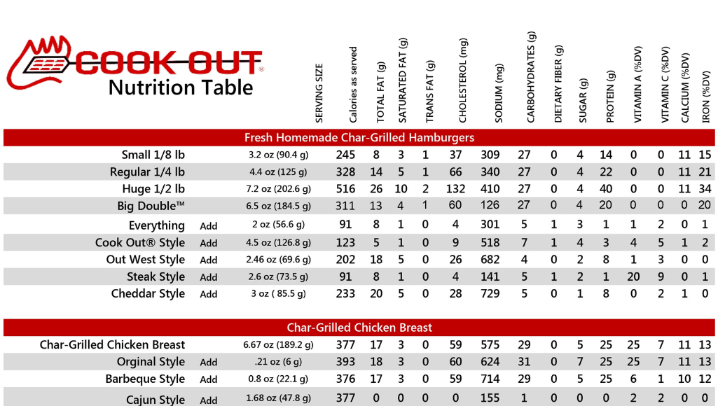 Cookout Nutrition Menu Info
