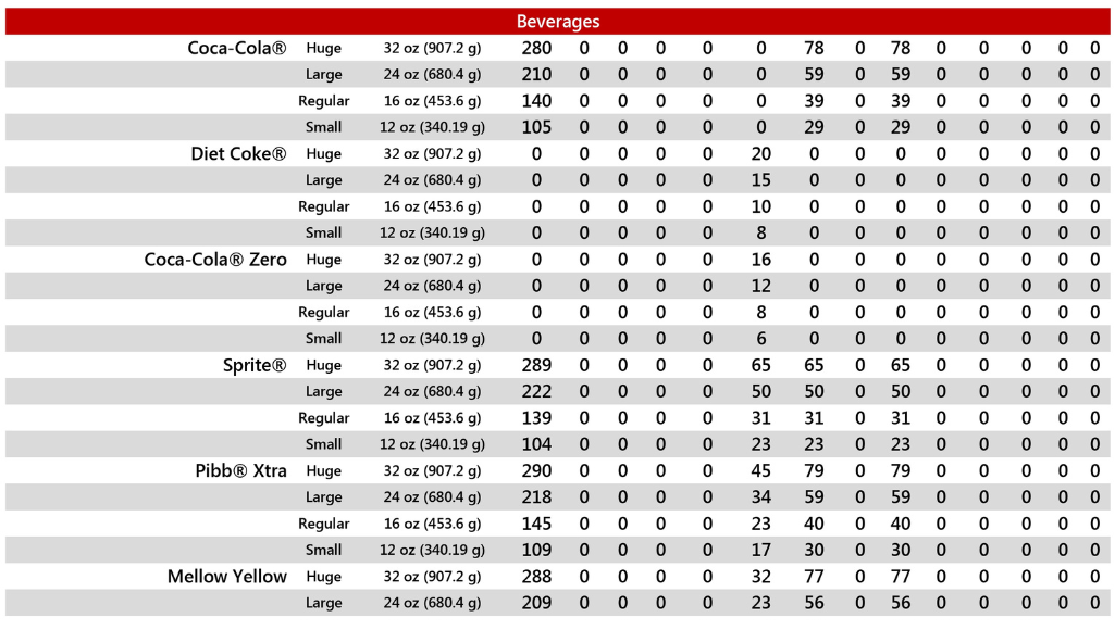 | Choose a Beverage | Large Drink | 290 Cal. |